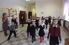 Сынны төз тотарга өйрәнәбез. Гәүдә-сынны төз тоту максатыннан озын тәнәфесләрдә башлангыч сыйныф кызлары белән профилактик күнегүләр ясыйбыз.