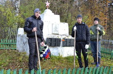 12 октября 2013 года РОМО «Объединение «Отечество» РТ – коллективный член Движения «Татарстан – новый век» провёл акцию по наведению порядка и чистоты на местах воинских захоронений периода Великой Отечественной войны 1941-1945гг. Мы ребята из группы «Память» :Хазиев Гомар Хашимович, Абдуллин Ильяс, Ахметзянов Инсаф, Гарипов Инсаф участвовали на этой акции. Нам небезразлична история, мы благодарны тем, кто отдал свои жизни во имя спасения мира на Земле.
