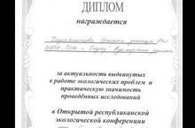 22 ноября ученица 8 класса Хазиахметова Ильсина ( рук. Фаляхова И. Р.) участвовала в Открытой республиканской экологической конференции в Арске с темой " Роль биотических факторов на развитие растений " . Она вернулась с дипломом .