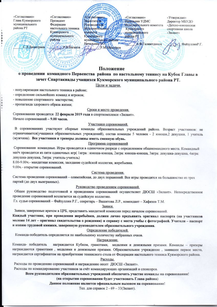 Командное Первенство района по настольному теннису на Кубок Главы в зачет Спартакиады учащихся Кукморского муниципального района