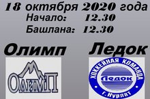 18 октября 2020 года состоится матч Первенства РТ по хоккею среди команд «Олимп» г. Кукмор и «Ледок» г. Нурлат.