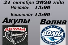 31 октября 2020 года состоится матч Первенства РТ по хоккею среди команд 2009г.р. «Акулы» г.Кукмор и «Волна» г.Казань.