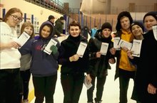 Раздача буклетов «СТОП ВИЧ/СПИД» молодежи во время массового катания на коньках.