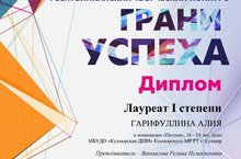 Учащаяся отделения "Тележурналистика" Кукморской детской школы искусств Гарифуллина Алия приняла участие в Республиканском творческом конкурсе "Грани успеха", где завоевала диплом Лауреата 1 степени, рук. Ваккасова Р.И.