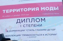 30 ноября в городе Набережные Челны состоялся Всероссийский фестиваль дизайнерского и театрального искусства "Территоря моды 2019г", где учащиеся художественного отделения завоевали Диплом 1 степени (рук. Вилданова М.М. и Гатина Г.И.). Поздравляем победителей и желаем им дальнейших творческих успехов.