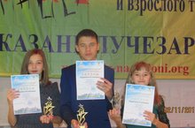 с 31 октября по 3 ноября 2017 года в г. Казани проходил IX Международный конкурс-фестивал детского, юношеского и взрослого творчества «КАЗАНЬ ЛУЧЕЗАРНАЯ». Учащиеся театрального отделения группы Хабибуллиной Д.Р. приняли активное участие и заняли призовые места: Данильчук Лия стала лауреатом II степени, Курбангалиев Булат и Федорова Алена стали лауреатами III степени. Учащиеся были награждены дипломом и кубками.