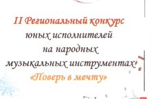 19 декабря 2015 года в районном центре Кизнер Республики Удмуртия состоялся 2 Региональный конкурс юных исполнителей на народных музыкальных инструментах "Поверь в мечту". Среди участников конкурса были исполнители из г. Ижевска, Можги, Кизнер, с.Малые Пурги Республики Удмуртия, города В.Поляны, Красные Поляны, Сосновка Кировской области, а так же г.Агрыз, пгтКукмор Республики Татарстан.