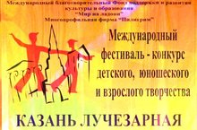 С 31 октября по 3 ноября 2015 года в г.Казань состоялся VII Международный фестиваль- конкурс детского, юношеского и взрослого творчества «Казань Лучезарная». Учащиеся МБОУ ДОД «Кукморская детская школа искусств» приняли активное участие. Среди конкурсантов были участники из г.Москва, Санкт-Петербург, Уфы, Самары, Геленджика и т.д. Несмотря на сложную борьбу, учащиеся Кукморского района одержали победу. В номинации «Вокал- соло» Анастасия Сабанчеева – Лауреат 1 степени (рук. Заслуженный работник культуры Гилязова В.Г.). В номинации «Художественное слово» Ислам Шайдуллин- Лауреат1 степени, Петрова Кира- Лауреат 2 степени (младшая возрастная категория) (рук. Почетный работник общего образования РФ Ваккасова Р.И.). В средней возрастной категории дуэт Динары Галиевой и Анастасии Сабанчеевой завоевал звание Лауреата 1 степени. Дирекция МБОУ ДОД «КДШИ» благодарит родителей учащихся за оказанную материальную и моральную поддержку при организации участия на данном фестивале- конкурсе.