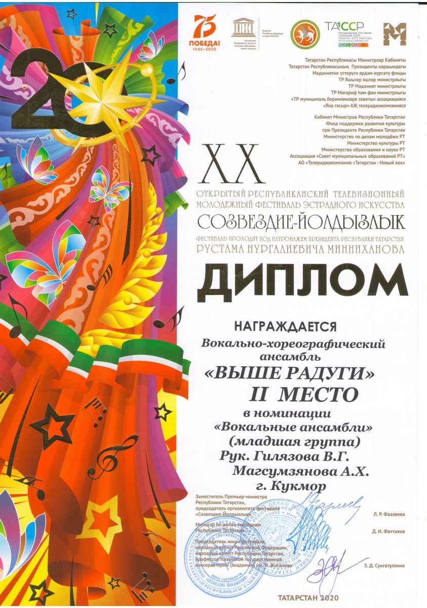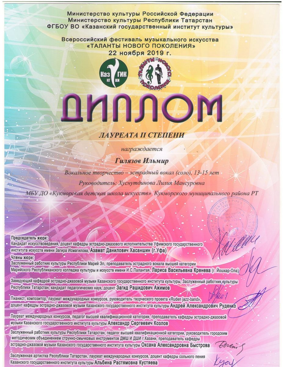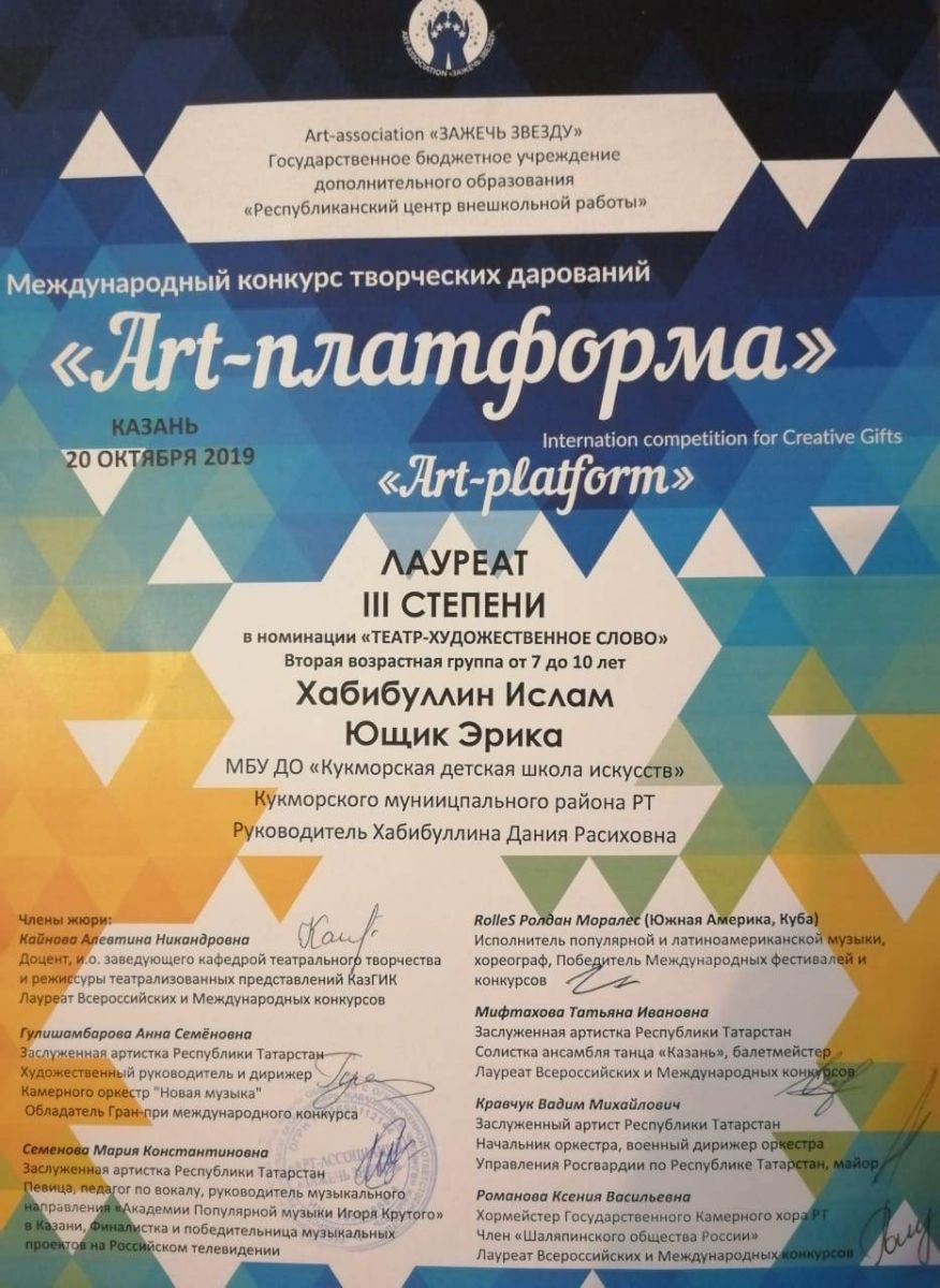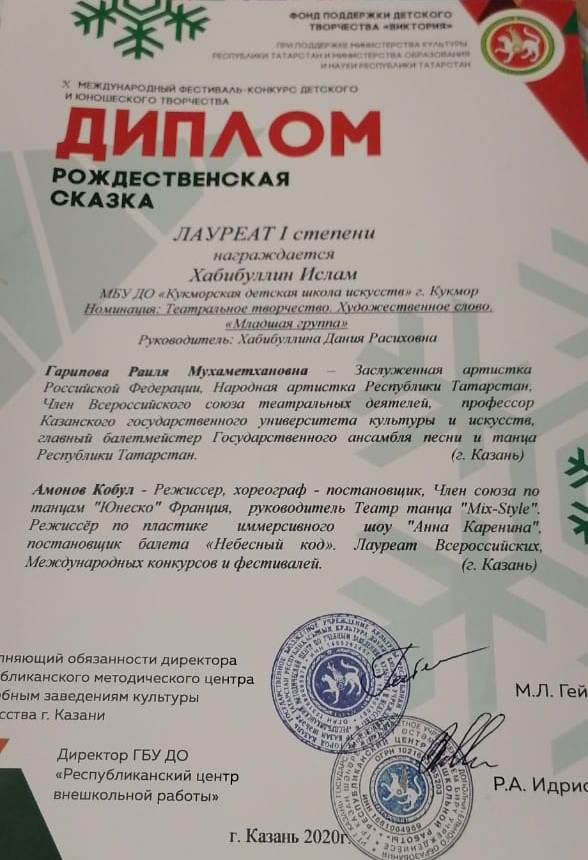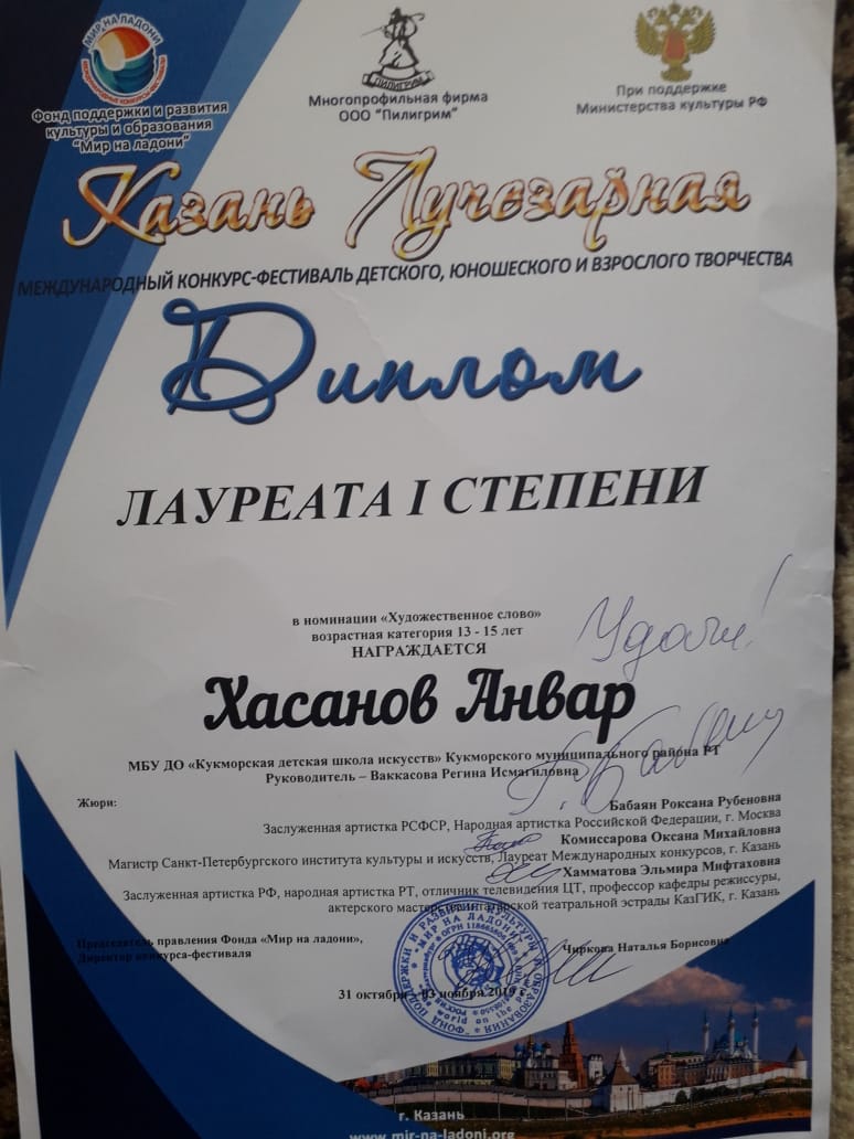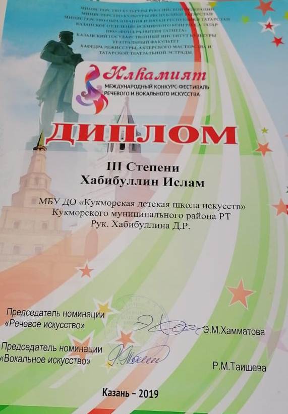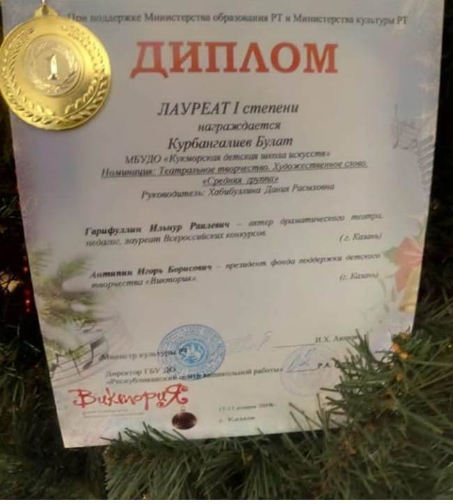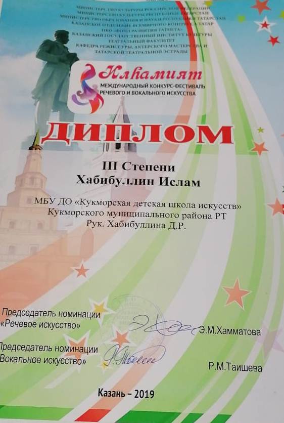 Хабибуллин Ислам- Лауреат 1 степени Дуэт Курбангалиев Булат и Глухова Элина- Лаурет 2 степени Муртазина Самира- Л2 степени; Мубаракшина Сирина-Л 2 степени |