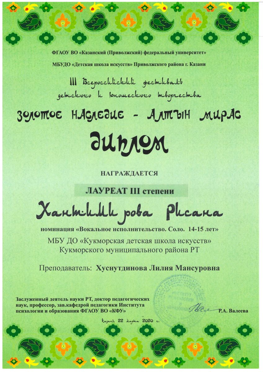 Всероссийский фестиваль детского и юношеского творчества «Алтын Мирас - Золотое Наследие» |