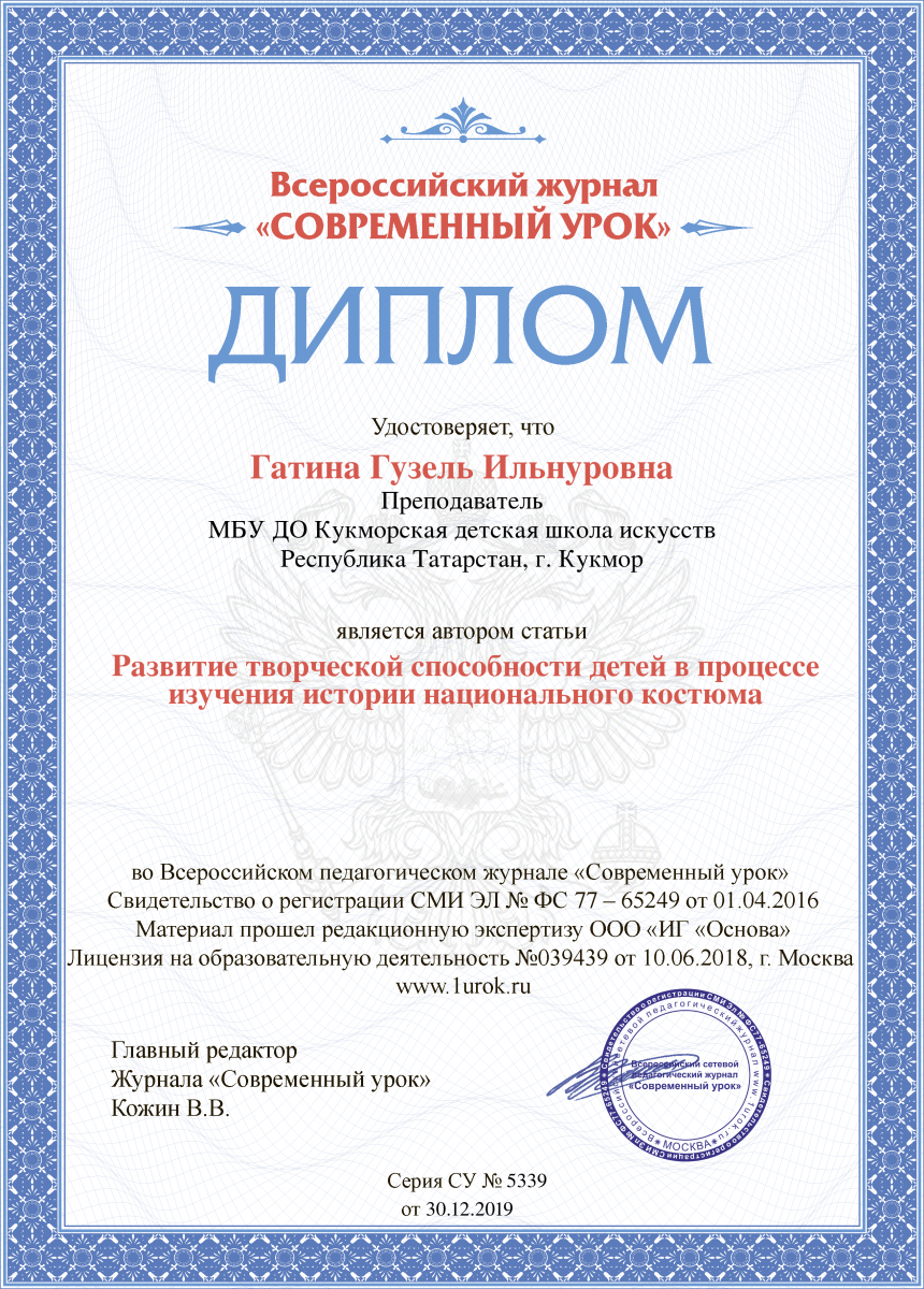 8. Хуснутдинова лилия Мансуровна- Публикация во Всероссийском педагогическом журнале «Современный урок»