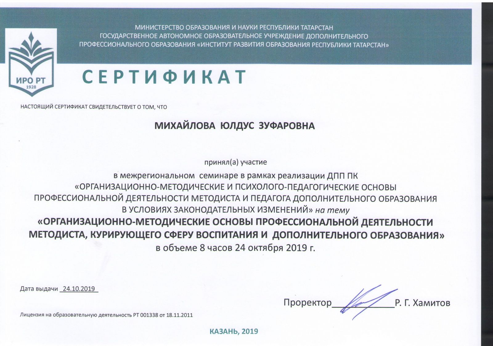 - Михайлова Ю.З. выступление на Республиканской стажировке «Организационно- методические основы профессиональной деятельности методиста, курирующего сферу дополнительного образования»;