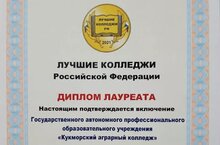 Кукморский аграрный колледж вошёл в число лучших колледжей РФ 2021 года 08.12.2021