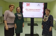 30 ноября 2021 года в г. Арск состоялся межрайонный семинар для воспитателей по обучению татарскому языку, музыкальных руководителей дошкольных образовательных организаций по теме «Туган тел-милләт җаны», посвященный Году родных языков и народного единства, в котором из нашего района участвовали Степанова Райхана Сахабовна (МБДОУ «Детский сад № 7 «Колокольчик» г.Кукмор»), Ишкулова Нурия Усмановна (МБДОУ «Детский сад с.Большорй Кукмор»). / 2021 елның 30 ноябрендә Туган телләр һәм халыклар бердәмлеге елы уңаеннын Арча шәһәрендә балалар бакчаларында татар теленә ойрәтуче тәрбиячеләр, музыка җитәкчеләре өчен «Туган тел-милләт җаны» дигән темага районара семинар узды.