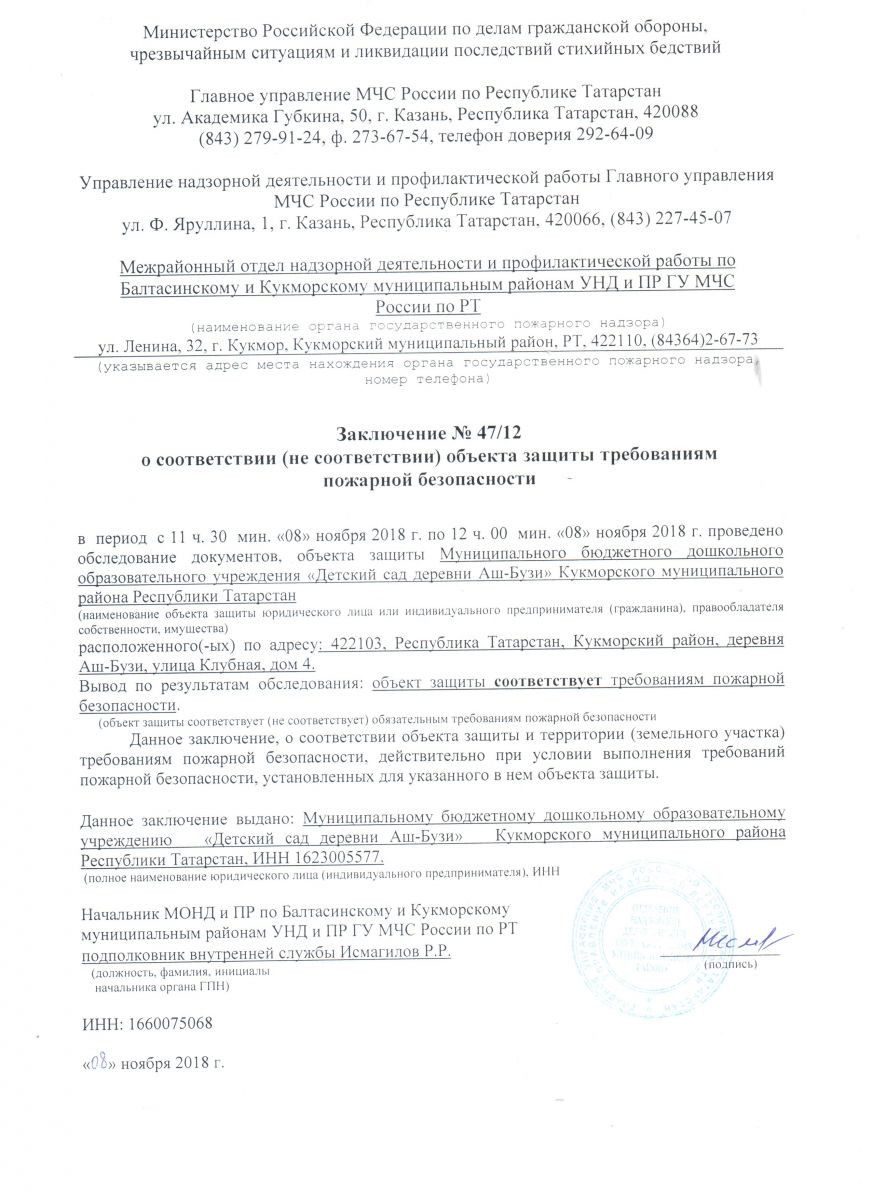 - Отчет МБДОУ "Детский сад д. Аш-Бузи" об исполнении предписания