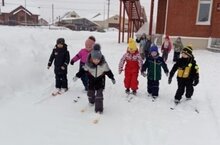 Воспитанники нашего детского сада с удовольствием катаютя на лыжах.