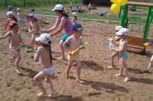 Одним из самых распространенных и любимых детьми дошкольного возраста летних праздников является День Нептуна. Он способствует формированию здорового образа жизни детей, совершенствует способности детей в проявлении выносливости, ловкости, смекалки, повышает работоспособность детского организма, воспитывает настойчивость в достижении результата, создаёт радостное настроение, вызывает положительный эмоциональный подъём у детей во время праздника. А к нам в детский сад приходил царь-государь подводного царства, Нептун! Он, в свою очередь, подготовил детям подарки - не только веселье и смех, но и настоящую морскую ВОЛШЕБНУЮ воду. Дети состязались в конкурсах, плескались водой. Было так весело! Особенно когда все вместе стали брызгаться водой . Дети «стреляли» друг в друга из водных пистолетов. Даже воспитателям досталось. «Это был мой самый лучший день в детском саду! » - говорили многие дети. И мы этому очень рады.