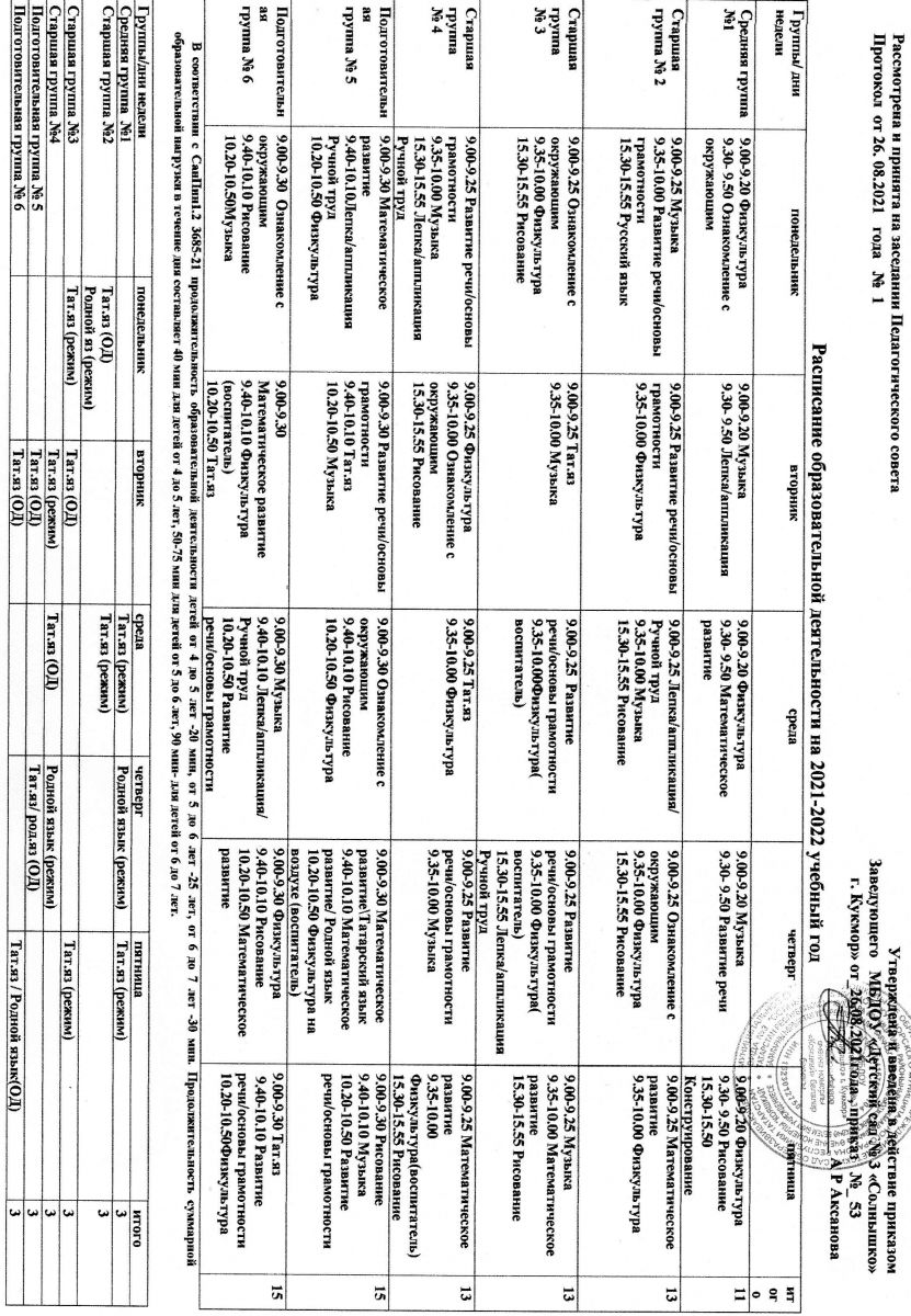РАСПИСАНИЕ ЗАНЯТИЙ 2021-2022 учебный год