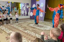 В первоапрельский день ребята всех возрастных групп попали на музыкальное развлечение «Мы умеем веселиться, смех здоровью пригодится!». Целью праздника было создание положительного эмоционального настроя, ощущения радости и веселья, сохранение психологического здоровья. В гости к детям пришли забавные клоуны Клепа и Ириска и предложили ребятам посмеяться и повеселиться. Вместе с воспитанниками клоуны вырастили волшебное дерево, на котором вместо фруктов выросли конфеты. Причем конфеты эти были волшебными, на них были написаны различные задания, которые дети с удовольствием выполняли. Все ребята приняли активное участие в таких конкурсах и играх, как: «Если весело тебе, то делай так!», «Веселая рыбалка», «Матрешки», «Веселая рыбалка», «Клоуны в ботинках», «Лужи». Своими забавами, играми, танцами, шуточными аттракционами веселые Клоуны создали радостную, теплую атмосферу праздника.