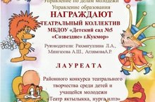 Бакчабызның балалары тәрбиячеләре белән районара театр осталыгы "Театр осталыкка, нурга илтә" бәйгесендә актив катнаштылар" һәи лауреат дипломнары белән бүләкләнделәр.