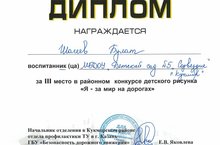 Подведены итоги районного конкурса детского рисунка "Я - за мир на дорогах" среди воспитанников МБДОУ Кукморского района. Воспитанник старшей группы "Акварельки" Шагеев Булат (руководитель Хазиева А.Т.) стал победителем (3 место). Поздравляем!!!