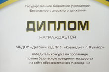 С целью активизации деятельности педагогических коллективов по пропаганде правил дорожного движения на сайте образовательного учреждения Управлением образования Исполкома Кукморского муниципального района РТ, ОГИБДД отдела МВД России по Кукморскому району, отделом профилактики в Кукморском районе ГБУ "Безопасность дорожного движения" был организован районный конкурс по пропаганде правил дорожного движения на сайте образовательного учреждения. Наш детский сад принял активное участие в данном конкурсе, стал победителем и награжден дипломом победителя и велосипедом. Поздравляем!!!