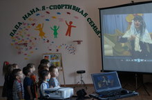 В рамках реализации годового плана воспитательно-образовательной работы МБДОУ в детском саду прошел досуг "Музыкаль сәхнә", посвященный Международному дню мультфильма. Ребята вместе с Машей встретились с героями татарских мультфильмов, играли и веселились вместе с ними, просмотрели отрывки из мультипликационных сюжетов. В конце досуга состоялась фотосессия с Машей.