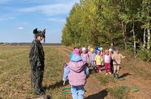 Старшая группа «Фиксики» совершили прогулку в осенний лес, где встретились с лесными жителями. -