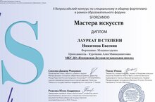 Желаем девочкам и преподавателям дальнейших успехов! Молодцы!1 мартта Казанда SFORZANDO белем бирү форумы кысаларында махсус һәм гомуми фортепиано буенча II Бөтенроссия конкурсы узды. Безнең мәктәпнең фортепиано бүлеге укучылары "Махсус фортепиано" номинациясендә катнаштылар: Никитина Евсения - 2 сыйныф (А.М. Курочкина ук.) - 2 нче дәрәҗә лауреат, Семенова Карина - 4 сыйныф (преп.Мамкина Д.Р. ук.) 2 дәрәҗә лауреат!. Кызларга һәм укытучыларга алга таба уңышлар телибез!