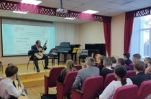 14 декабря 2022 года в актовом зале Кукморской детской музыкальной школы в рамках проекта «Пушкинская карта» состоялся мастер-класс «Под звук гитары звонкой» для учащихся Многопрофильного лицея им.А.М.Булатова. Гитара считается наиболее популярным музыкальным инструментом в мире. Преподаватель отделения народных инструментов Ищенко Ю.В. провел познавательную беседу, рассказал об истории возникновения инструмента. В исполнении преподавателей Набиевой С.Р., Ищенко Ю.В. и учащихся Мочалова М, Нургалиевой А. прозвучала старинная, классическая, народная и современная музыка на таких инструментах как гитара, электрогитара, домра. Гости мастер-класса смогли поиграть на гитаре. В завершении мероприятия участники мастер-класса исполнили всем знакомую мелодию на гитаре и шумовых народных инструментах.