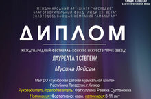Ахмадуллина Ильсина (преп.Шаймарданова З.К.) в номинации "Вокальное исполнительство" - Лауреат 1 степени,