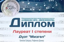 Поздравляем дуэт баянистов "Мизгел" - Бикбова Сайдаша и преподавателя Рафикова Д.Ф. - Лауреатов 1 степени II Международного фестиваля-конкурса музыкального искусства «LA MAGIA DELL’ARTE», прошедшего в г.Казань!