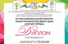 В ДМШ №1 имени Э.Бакирова г.Елабуга при поддержке Министерства культуры Республики Татарстан состоялся XVI Республиканский конкурс юных музыкантов "Малые города", посвященный Году родных языков и Народного единства в РТ. Наши учащиеся приняли активное участие в конкурсе и показали очень хорошие результаты: