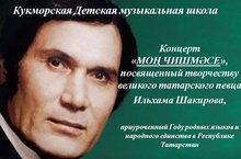 16 февраля в Кукморской детской музыкальной школе состоялся концерт "Моң чишмәсе", посвященный дню рождения и творчеству великого татарского певца Ильхама Шакирова, приуроченный Году родных языков и народного единства в Республике Татарстан. В программе концерта в исполнении учащихся и преподавателей прозвучали такие произведения, как «Тоннәрем йөкысыз үтә», «Әдрән диңгез», «Чыгарсынмы каршы алырга», «Эзләдем бәгърем сине», «Ак калфак», "Ай былбылым", "Туган тел» и многие другие. Ведущая музыковед Семенова С.В. На концерт были учащиеся 7 А класса Многопрофильного лицея им. А.М.Булатова.