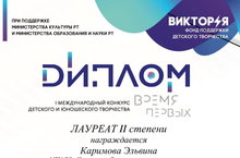 Стали известны результаты I Международного конкурса "Время первых". Конкурс проводился среди Лауреатов 1 степени фестивалей-конкурсов Фонда поддержки детского творчества "Виктория" за 2019-2020 годы. Учащаяся Кукморской детской музыкальной школы Каримова Эльвина (преподаватель Бариева Д.М.) удостоилась звания Лауреата 2 степени! Поздравляем!!!