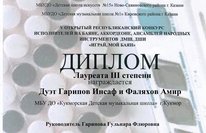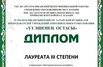 Поздравляем!!! Ансамбль преподавателя Рафикова Д.Ф. и Гимадеева Тимура удостоился звания Лауреата 3 степени IV Республиканского конкурса татарской музыки для преподавателей учреждений дополнительного образования "Үз эшенең остасы" в номинации "Инструментальные ансамбли", организованного ГБУДО "Республиканский центр внешкольной работы".