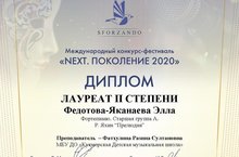 -Федотова-Яканаева Элла - Лауреат 2 степени, Диплом за лучшее исполнение татарского произведения (преп.Фатхуллина Р.С.)