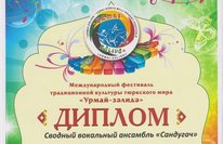 Стали известны результаты Международного фестиваля традиционной культуры тюркского мира "Урмай-Залида", организованого при поддержке Министерства культуры, по делам национальностей и архивного дела Чувашской Республики, Исполкома Всемирного конгресса татар, Национальной культурной автономии татар Чувашской Республики. Учащиеся Кукморской детской музыкальной школы под руководством преподавателей Каримуллина Н.Р. и Юзмеевой З.А. приняли участие в данном конкурсе. По его результатам Сводный ансабль КДМШ и РДК "Сандугач" удостоился звания Лауреата 1 степени, преподаватель Каримуллин Н.Р. в номинации "Научные сообщения, доклады, рефераты, методические разработки" удостоился звания Лауреата 1 степени, и в номинации "Национальное сольное вокальное исполнительство" - Лауреата 1 степени! Поздравляем с победой!!!