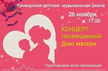 26 ноября в актовом зале Кукморской детской музыкальной школы прошёл праздничный концерт, посвященный Дню Матери. Всех женщин, сидящих в зале поздравили начальник Управления культуры Нуриев Р.Б., председатель Совета ветеранов Иванов В.К., директор музыкальной школы Фасхутдинова Э.Х. В зале царила добрая, праздничная атмосфера.