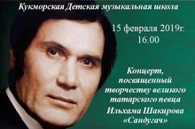 15 февраля 2019г. в 16.00 в актовом зале Кукморской Детской музыкальной школы состоится концерт, посвященный творчеству великого татарского певца Ильхама Шакирова "Сандугач". Приглашаем всех желающих на концерт!