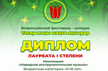 Санкт-Петербург шәһәрендә узган "Туган киңлекләр" халыкара конкурс-фестивале нәтиҗәләре билгеле булды. Безнең мәктәпнең тынлы һәм бәрмә уен кораллары бүлеге укучысы Хабибуллин Ислам 1 дәрәҗә Лауреат исеменә лаек булды! Исламны һәм укутучыларын Хәсәнов М.Р., Юзмеева З.А. җиңүләре белән котлыйбыз!