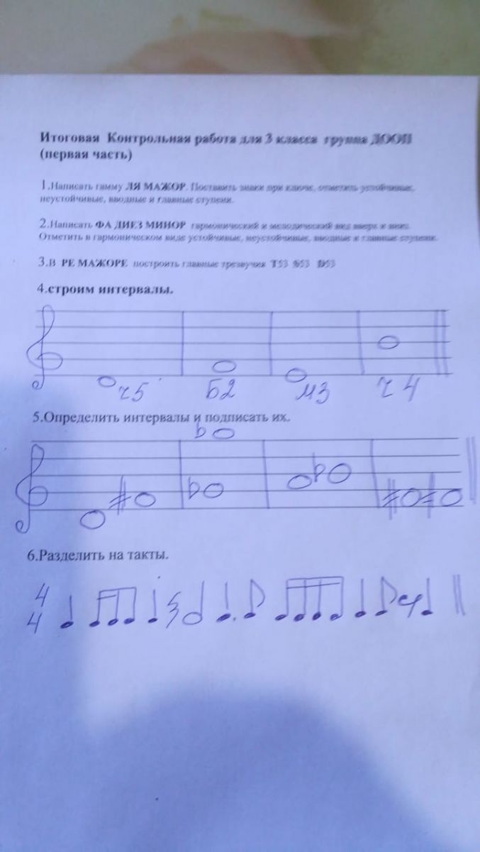 4. Построить интервылы. От ноты ре вверх постройте пройденные интервалы: ч1, ч8,ч4,ч5, м2,м3,б2,б3.