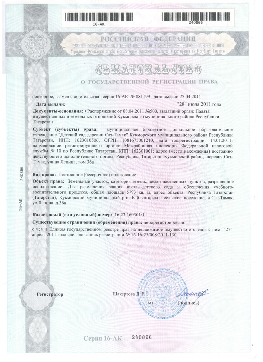 | Короткое название: | МБДОУ "Детский сад д. Саз-Тамак" Кукморского муниципального района Республики Татарстан |