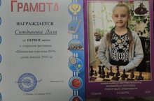 «Шахматная королева» 05.03.2019 Воспитанница отделения «Шахматы» Детского оздоровительно-образовательного (профильного) центра Ситдикова Диля, со 2 – 3 марта 2019 года участвовала в открытом фестивале «Шахматная королева» среди девочек 2010 г.р. (г.Казань). После 7 туров, выиграв сильнейших соперниц из крупных городов, стала Чемпионкой. Педагог Абдулов Владислав Сергеевич. 2019 елның 2 – 3 мартында Казан шэһэрендә 2010 елгы кызлар арасында “Шахмат ханбикәсе” ачык Республика фестивале булып узды. Балаларны сәләмәтләндерү-белем бирү (профильле) үзәгенең “Шахмт” булеге укучысы Ситдикова Дилә 7 тур нәтиҗәләре буенча республика шәхәрләреннән килгән кочле шахматчыларны җиңеп, Чемпион калды. Педагог Абдулов Владислав Сергеевич.