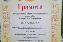 Команда под руководством педагога Флорида Хабибуллина приняла участие в Чемпионате Республики Татарстан по спорту слепых дисциплина футзал 5х5, котрый проходил в г. Альметьевск и завоевала 2 место.