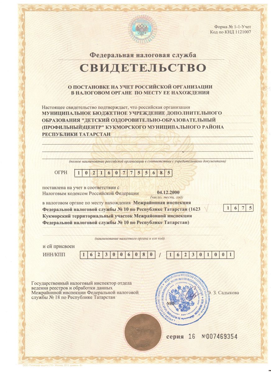 Свидетельство о постановке на учет