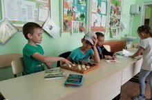 Көндәлек рапорт һәм зарядкадан соң Өлге авылы китапханәсенә юл тоттык. Альбина Камиловна балаларны Пушкин иҗаты буенча "сәяхәт"кә алып чыкты. Балалар ике командага бүленеп көчләрен сынаштылар. Шашка, домино һәм өстәл уеннары уйнадык, спортзалда "Күнелле стартлар" оештырылды.
