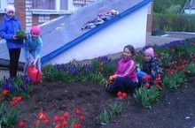Алар бакчаны тәртипкә китерәләр су сибәләр, чәчәкләр утырталар, чүп утыйлар. Берсе дә эшсез утырмый.Афәрин, укучыларыбыз, матурлык бар кешене дә сөендерә.