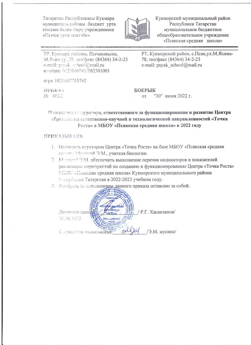 Муниципальное бюджетное общеобразовательное учреждение "Псякская средняя школа" Кукморского муниципального района Республики Татарстан/Татарстан Республикасы Кукмара муниципаль районы муниципаль бюджет гомуми белем бирү учреждениесе "Пычак урта мәктәбе"