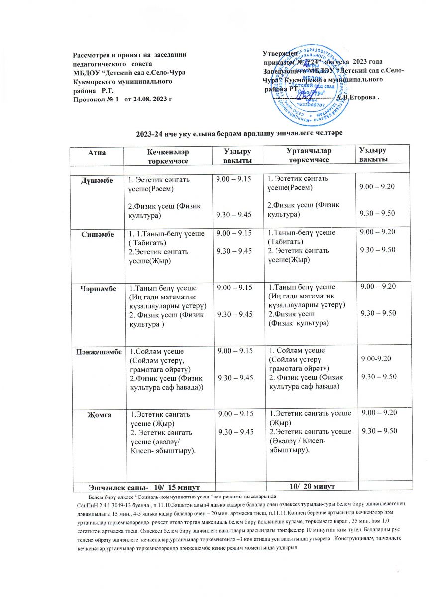 Расписание образовательной деятельности старшей,подготовительной подгруппы на 2023-2024 учебный год